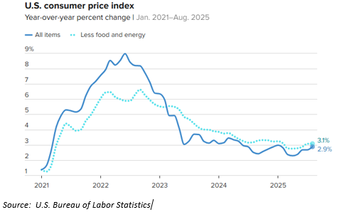 INFLATION: The latest read on inflation was in line with expectations and low enough to move the Fed off its interest rate pause. While we do believe consumers will see some price increases due to tariff inflation, it is still not showing up in the data. The last 12 months of CPI data has been steadily in the 3.0% range, as the chart below displays. Note that this data is a month old since the September CPI was not reported on time.