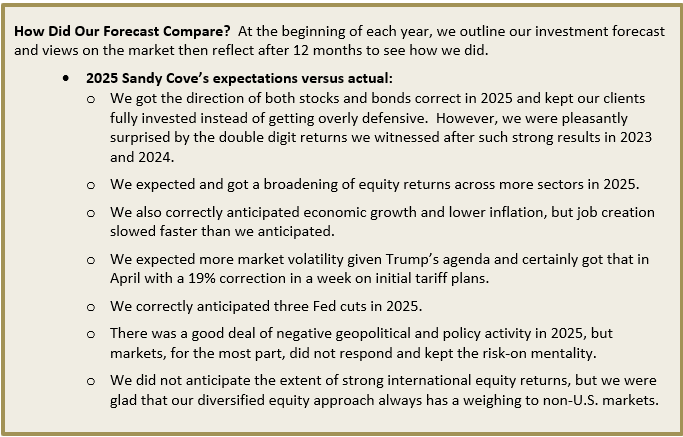 Sandy Cove Advisor's 2025 Market Review and 2026 Outlook