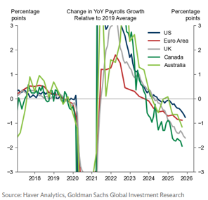 We do see a soft spot in the economy and that is in the labor market where payroll growth has decelerated in the U.S. and abroad post the COVID recovery. A slowing job market is still growing, but we will be keeping an eye on the monthly employment figures given the importance new jobs have on consumers and the economy. It will also be interesting if we can quantify AI-related headcount reductions.